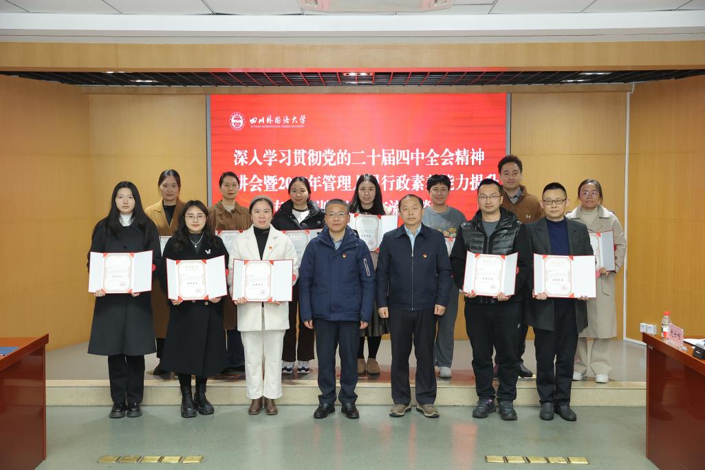 刘嗣方在讲话中向圆满完成研修任务、顺利结业的全体学员表示热烈祝贺,对培训班举办成效给予充分肯定。他指出,举办此次专题培训班,是学校针对管理人员全面贯彻落实党的二十届四中全会、深入学习贯彻习近平总书记在中央办公厅座谈会上重要讲话精神的重要培训,是进一步提升我校行政管理队伍专业化、职业化、现代化水平的具体举措,全体学员在培训中增强了政治忠诚的自觉性、提振了干事创业的精气神、拓展了履职尽责的新思路、提升了综合素养的基本功。他强调,当前川外正处在多点突破、提质扩容、整体跃升的关键时期,迫切需要一支政治过硬、本领高强、作风优良、能担重任的行政管理队伍。他要求全体学员坚定以党的二十届四中全会精神为指引,认真落实“五个坚持”重要要求,紧扣立德树人根本任务,聚焦学校“十四五”规划收官与“十五五”谋篇布局,围绕推动学校高质量发展部署安排,着力增强政治能力、学习能力、改革攻坚能力、沟通协调能力、狠抓落实能力、群众工作能力、驾驭风险能力以及自我革命能力,在服务大局中彰显担当,在平凡岗位上践行初心,持续提升“三服务”工作质效。
