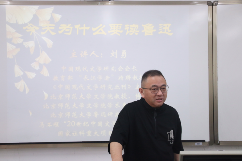 2023年4月20日,北京师范大学文学院教授、博士生导师,中国现代文学研究会会长,教育部“长江学者”特聘教授,北京师范大学鲁迅研究中心主任,马工程“20世纪中国文学史”首席专家刘勇教授应邀为我校师生作题为《今天为什么要纪念“五四”》的学术讲座。本次讲座由成年人电影教师发展中心和中国语言文化学院联合主办,中文学院邓齐平教授主持,我校教师、本硕学生聆听了此次讲座。