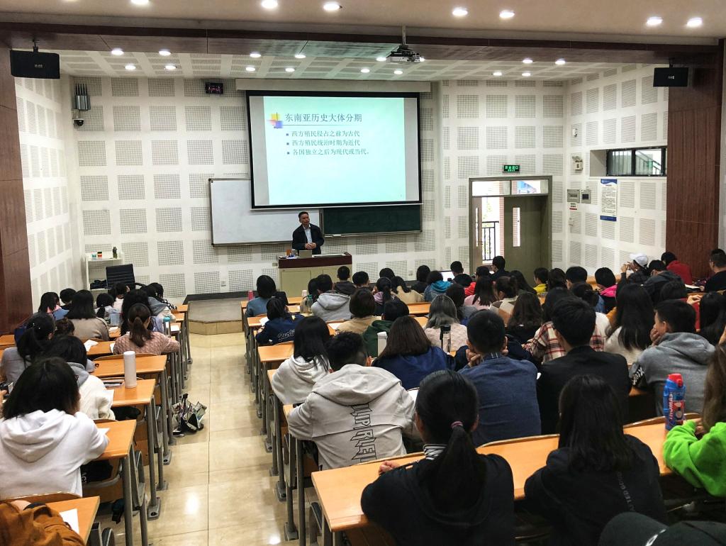 10月19日下午,古小松博士在西区教学楼阶梯教室B2-1开展了题为《东南亚历史文化若干问题》的专题讲座,我校东方语学院全体越南语、泰语专业师生参加。讲座之初,古老师联系近现代时事要闻,强调当今世界东南亚的重要战略地位。接着,他概述东南亚历史发展的整体脉络,并以此指出东南亚国家具有局部同一性,即经济和军事上的同一性。随后,古老师回顾了古代东南亚大陆的四大战争:柬占之战,泰柬之战,缅泰之战,越占之战,并以高棉人创造的巨石文化展示了古代东南亚的灿烂文明。鉴于听众为多为越泰语言专业的师生,古老师详细介绍越南和泰国的古今历史,通过讲述两个国家重要的发展节点和与汉关系的变化,论述了两国与中国有着追本溯源的联系。古老师最后从地理位置、人文关系和历史关系的变化总结了中国与东南亚的关系,表达对越泰专业同学未来就业的看好与期许。
