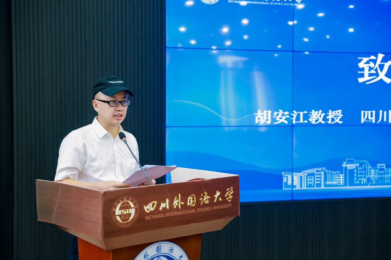 我校副校长胡安江、重庆翻译学会会长祝朝伟教授出席开幕式并致辞。胡安江向远道而来的各位专家致以热烈欢迎。他指出,在全球化、数字化及人工智能技术发展背景下,翻译人才培养需转型,构建“语言+专业+数智化”三维能力矩阵,从技术融合与学科交叉、教育模式深度协同、教育资源整合等维度重构培养体系,聚焦培养学生多方面意识与高端复合型翻译人才。他呼吁各高校加强合作,共同推进翻译人才队伍建设。